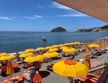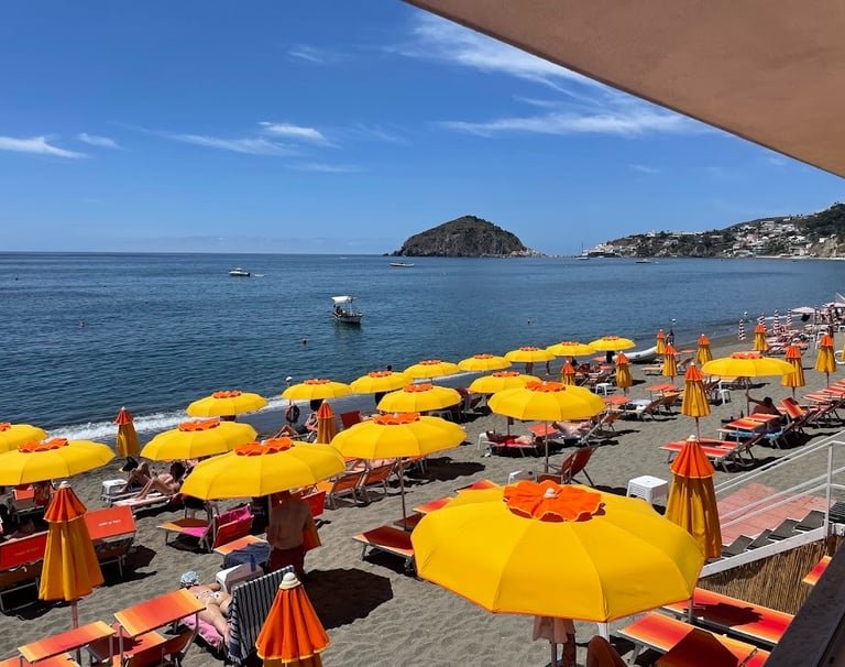La Spiaggia dei Maronti, a Ischia, è un’oasi di pace e bellezza naturale. Lunga tre chilometri e circondata da colline verdi, si affaccia su una distesa di mare cristallino.